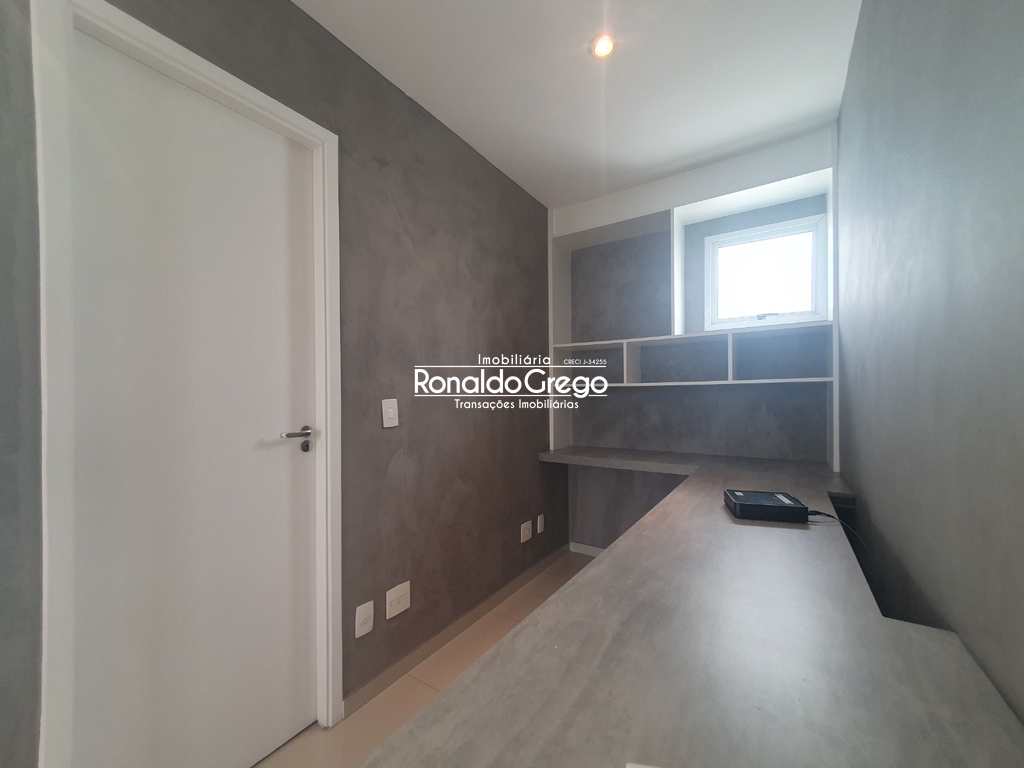 O imóvel possui 121m² de área privativa, com planta muito bem distribuída. A área social conta com sala ampla para dois ambientes, equipada com ar-condicionado, integrada a uma agradável varanda gourmet, ideal para momentos de lazer e convivência. Há ainda um espaço de escritório com armários planejados, perfeito para home office, além de um lavabo reformado, que atende a área social com elegância.