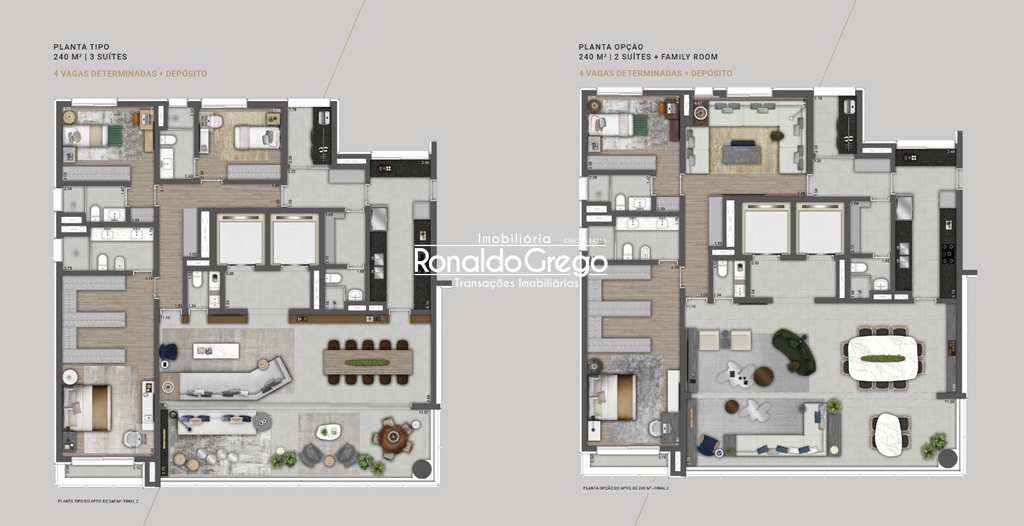 Unidade final 2 com 240,26 m² dispõe de 3 suítes, 4 vagas de garagem determinadas e depósito privativo.