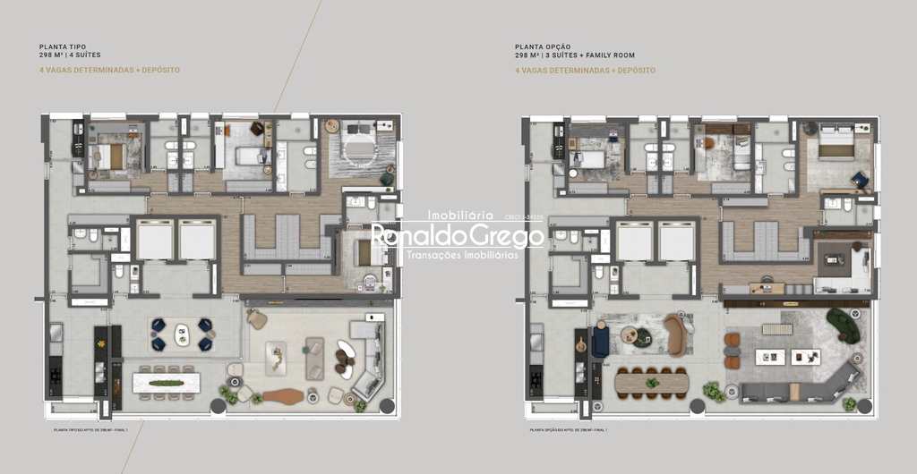 Unidade com 298,33 m² oferece ainda mais amplitude, com infraestrutura completa e o mesmo padrão elevado de acabamento.