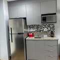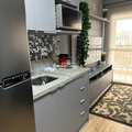 Cozinha compacta equipada com eletrodomésticos modernos