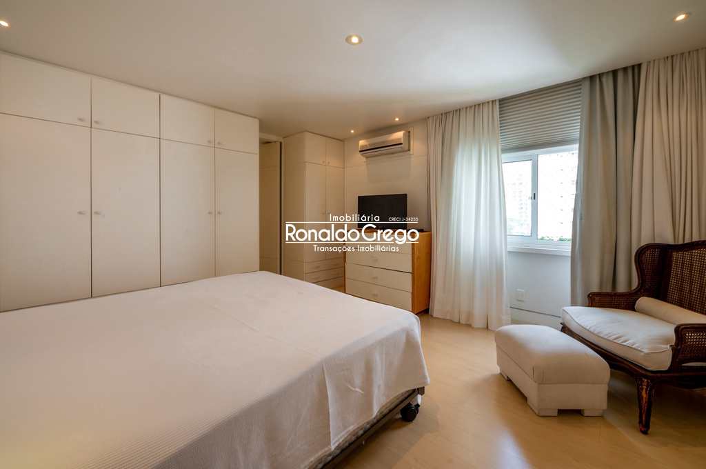 São 4 dormitórios, todos suítes, equipados com ar-condicionado, garantindo privacidade e comodidade. A cozinha é totalmente equipada, com armários planejados, utensílios completos para o preparo de qualquer refeição e eletrodomésticos e eletroportáteis de primeira linha, incluindo cafeteira Nespresso e sanduicheira. O apartamento conta ainda com 2 vagas de garagem.