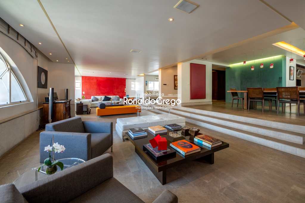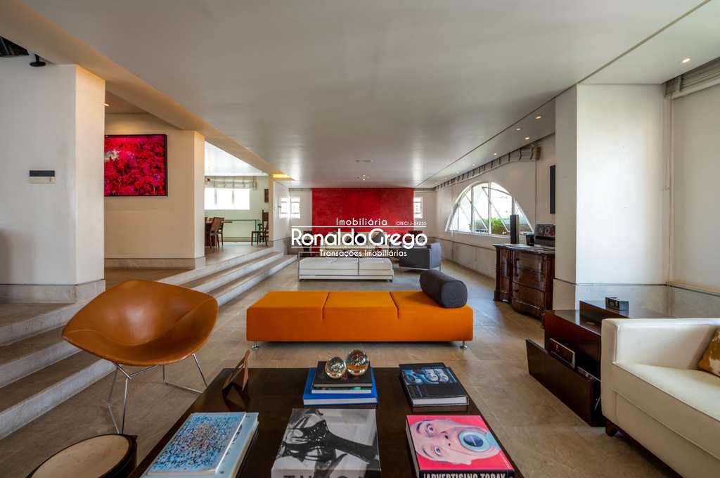 O imóvel oferece ambientes amplos, bem iluminados e arejados, com uma imponente sala de estar semi-integrada às salas de jantar e TV, valorizada por um elegante jogo de níveis no piso. A decoração é moderna, com mobília sofisticada e acabamentos de alto padrão, proporcionando conforto e elegância em todos os ambientes.