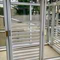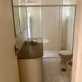 1 banheiro social moderno com box de vidro e armários planejados