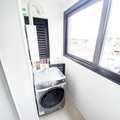 Área de serviço com máquina lava e seca.