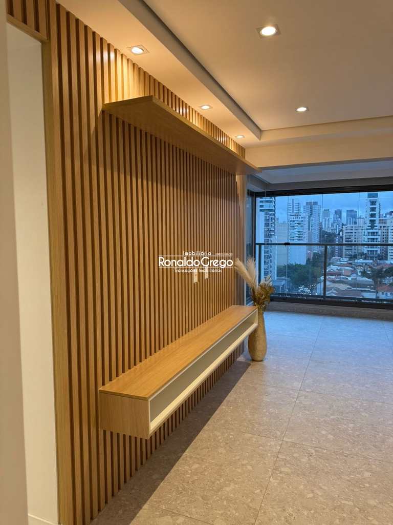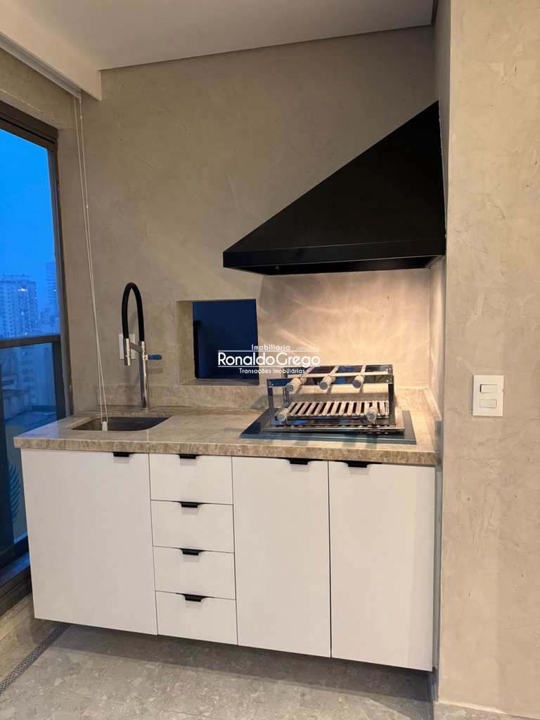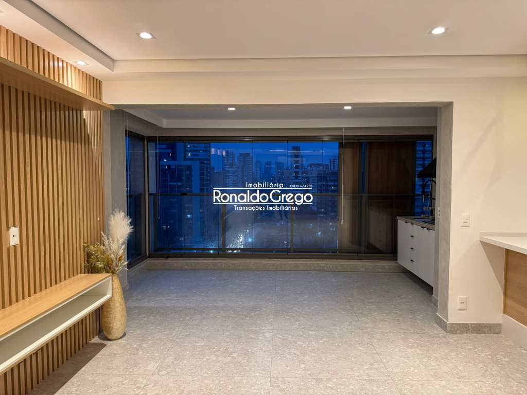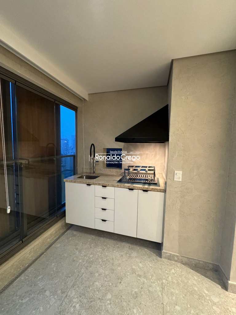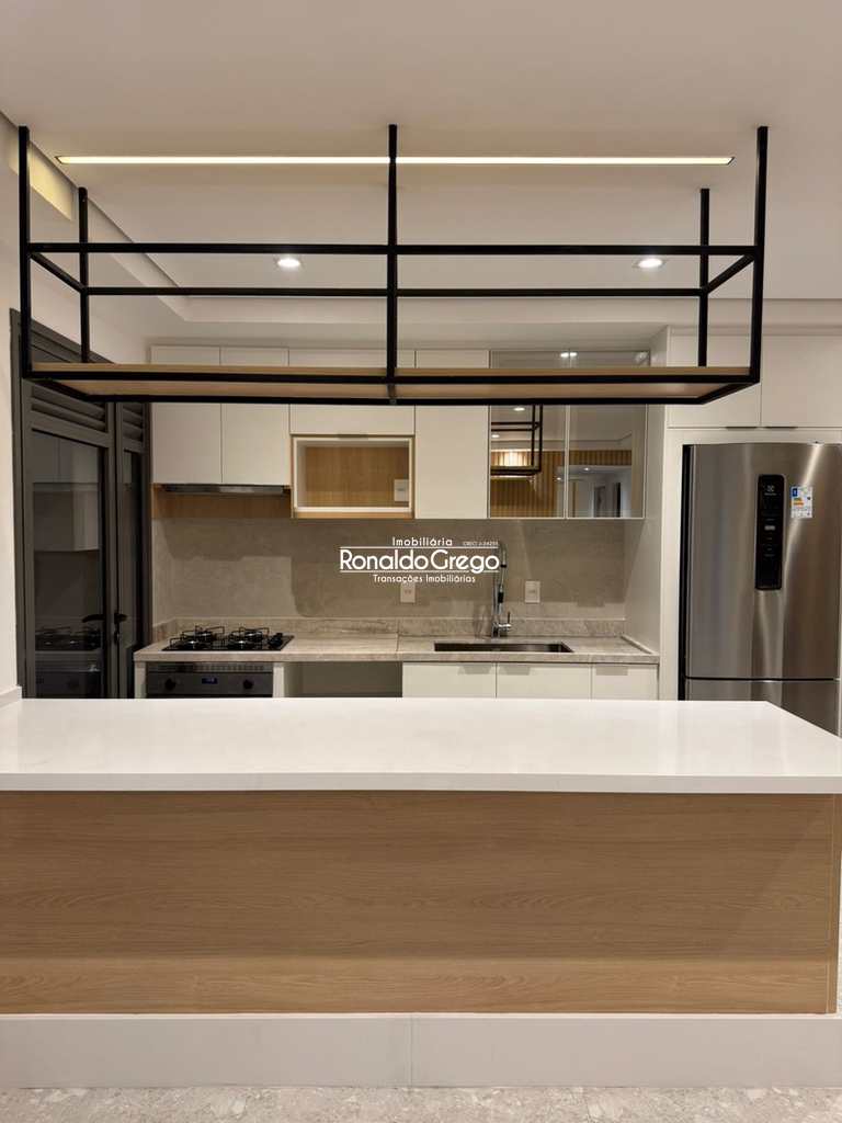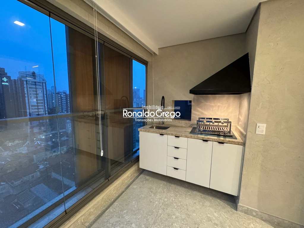 O imóvel possui dois dormitórios, ambos suítes, além de três banheiros, uma vaga de garagem e uma varanda gourmet integrada à sala, com churrasqueira. Todos os ambientes são climatizados e contam com armários planejados. A cozinha, altamente instagramável, foi projetada com acabamento moderno, fogão cooktop e geladeira de alto padrão. O design do apartamento privilegia integração, luminosidade e conforto.
