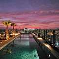 Piscina com vista panorâmica para a cidade.