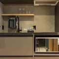 Equipamentos Inclusos: Geladeira, micro-ondas, cooktop, TV, mesa multiuso com 2 cadeiras, sofá e cama box.