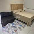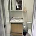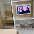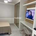 Studio novo e nunca habitado totalmente mobiliado com armários embutidos, cama box com baú, cadeira, banqueta, banco baú, cortina blackout, geladeira, cooktop portátil de 2 bocas, micro-ondas, TV e ar-condicionado todos os itens são novos e o studio possui varanda envidraçada trazendo mais conforto e luminosidade
